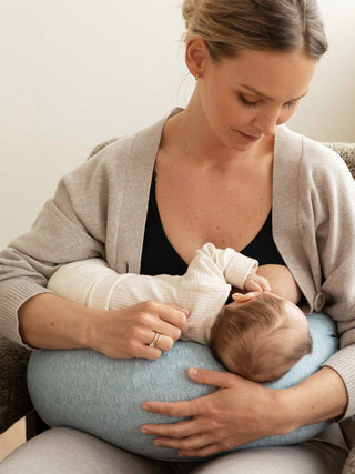 Having a well-designed, supportive pillow can be crucial, especially in the early stages of breastfeeding. Nursing comes with a learning curve for both you and your baby, and you will probably find yourself hunching over to help guide the baby’s latch and support their weight. You’ll also be sitting or lying in fixed positions for multiple hours a day (and night). All this puts stress and strain on your back, shoulders, arms, and neck. Since you’ll also be recovering from labor and delivery, it’s important to prevent further pain and injury during these early days.